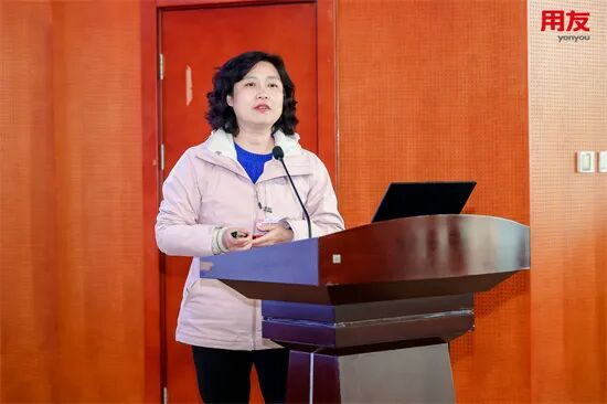 在主题演讲环节,业内权威专家与龙头企业实践代表带来了多场高水准的分享。用友网络副总裁付建华从技术创新与产业实践角度,分享了“十五五”规划下企业财务数智化的进阶路径,强调数智技术的应用需紧扣企业实际需求,实现从“流程自动化”向“决策智能化”的跨越。她指出,企业财务数智化实践应以数智化转型牵引财务管理能力提升,“十五五”企业财务数智化将进入深水区并呈现出九大核心目标,企业实践将呈现六大特征,期待在政策、学术、产业、服务商四方协同下,“十五五”期间共同推动中国企业会计数智化转型加速突破。